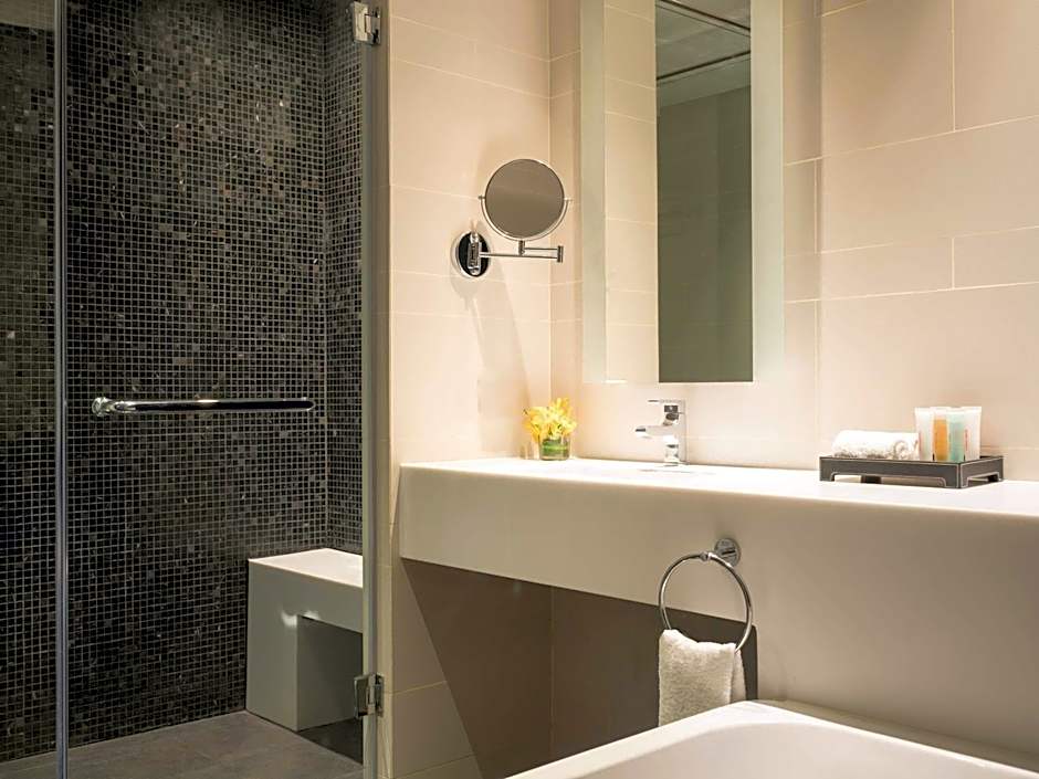 Executive Twin with Lounge Access is 366 square feet and includes 2 single beds 80-130 width plus extra beds on demand, desk, hairdryer, tea and coffee making facilities , bathrobes, and slippers and is Wheelchair-accessible.